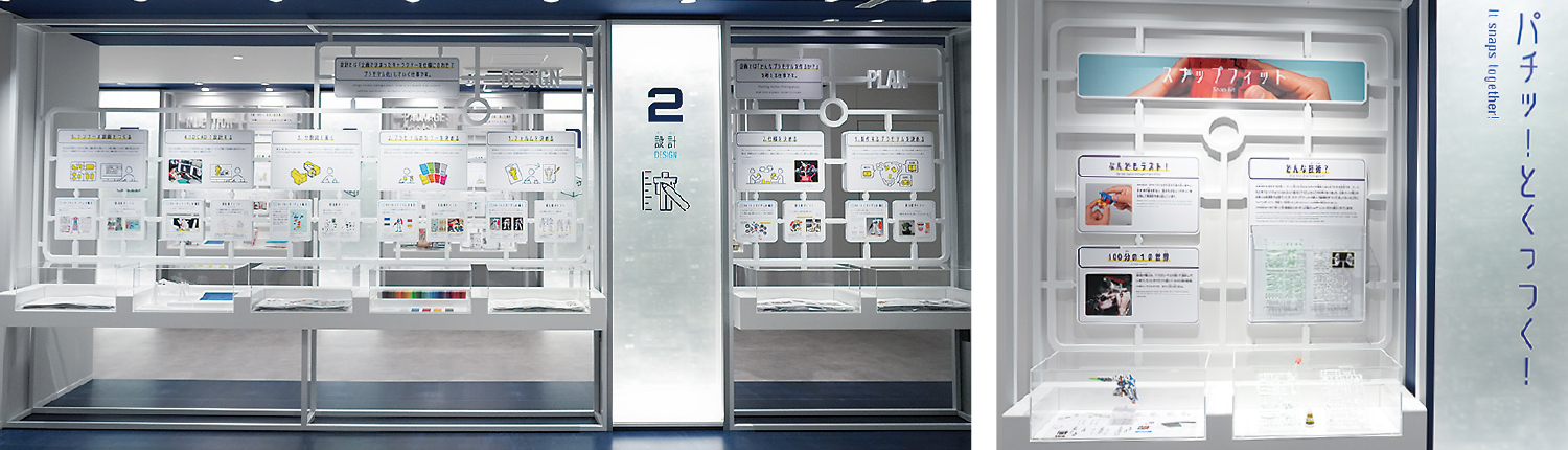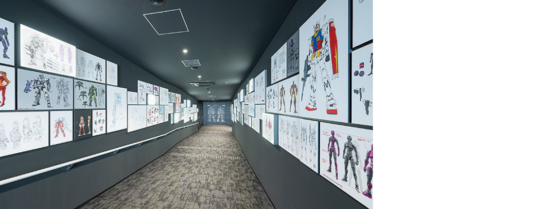 Upon stepping into the entrance, visitors are greeted by design documents for Gundam model kits from all generations, the 30MS line, and other products
