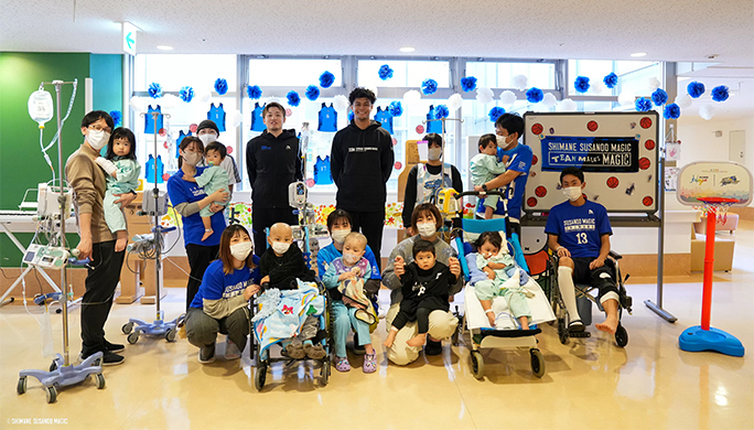 As part of its contribution activities to the local community, the Shimane Susanoo Magic held an event in November 2025 called the Pediatric Medical Support project: bringing smiles and hope through the power of basketball at the pediatric ward of Shimane University Hospital. The event included commemorative photo opportunities with players, giving gifts to cheer up the children, a Q&A session, and a piano performance by players. Going forward, the team will continue to actively carry out visits and community support programs, bringing to children the smiles and positive feelings that come from interacting with professional athletes.