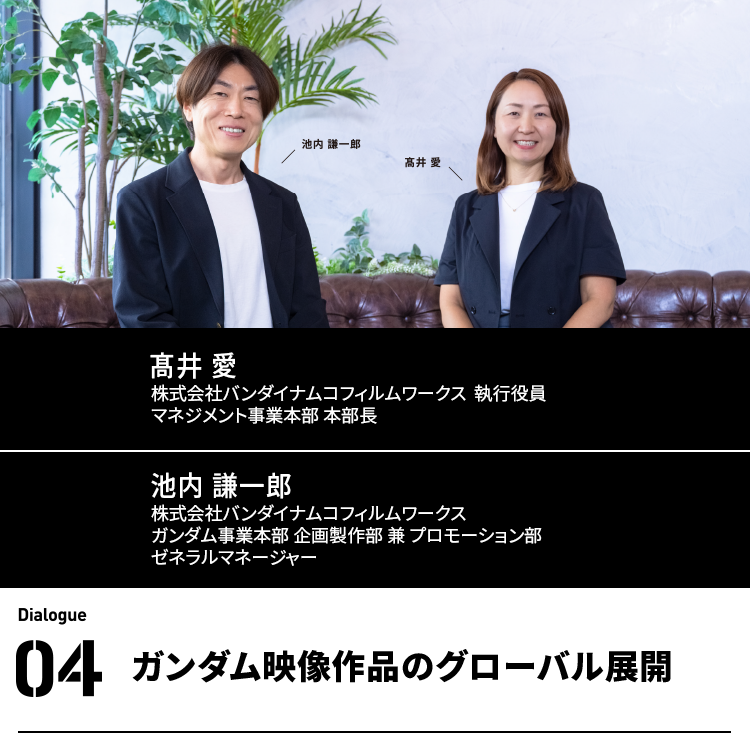 例えば、「機動戦士ガンダムSEED FREEDOM」の劇場公開を通じて、未開拓であった地域も含め様々な地域から予想以上の反応を得ることができました。こうした声や熱量は、次の展開を考えるうえで大きな手がかりとなります。今後は、劇場公開や配信などの実績を活かしつつ、地域ごとの市場環境や文化的背景を丁寧に捉えたうえで、最適なアプローチを模索していきます。