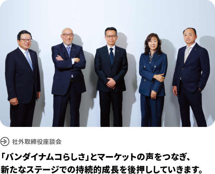 読者の皆様には、本統合レポートを通じて、バンダイナムコグループの目指す方向性や最新の取り組みをご理解いただき、今後ともご期待いただければと考えています。