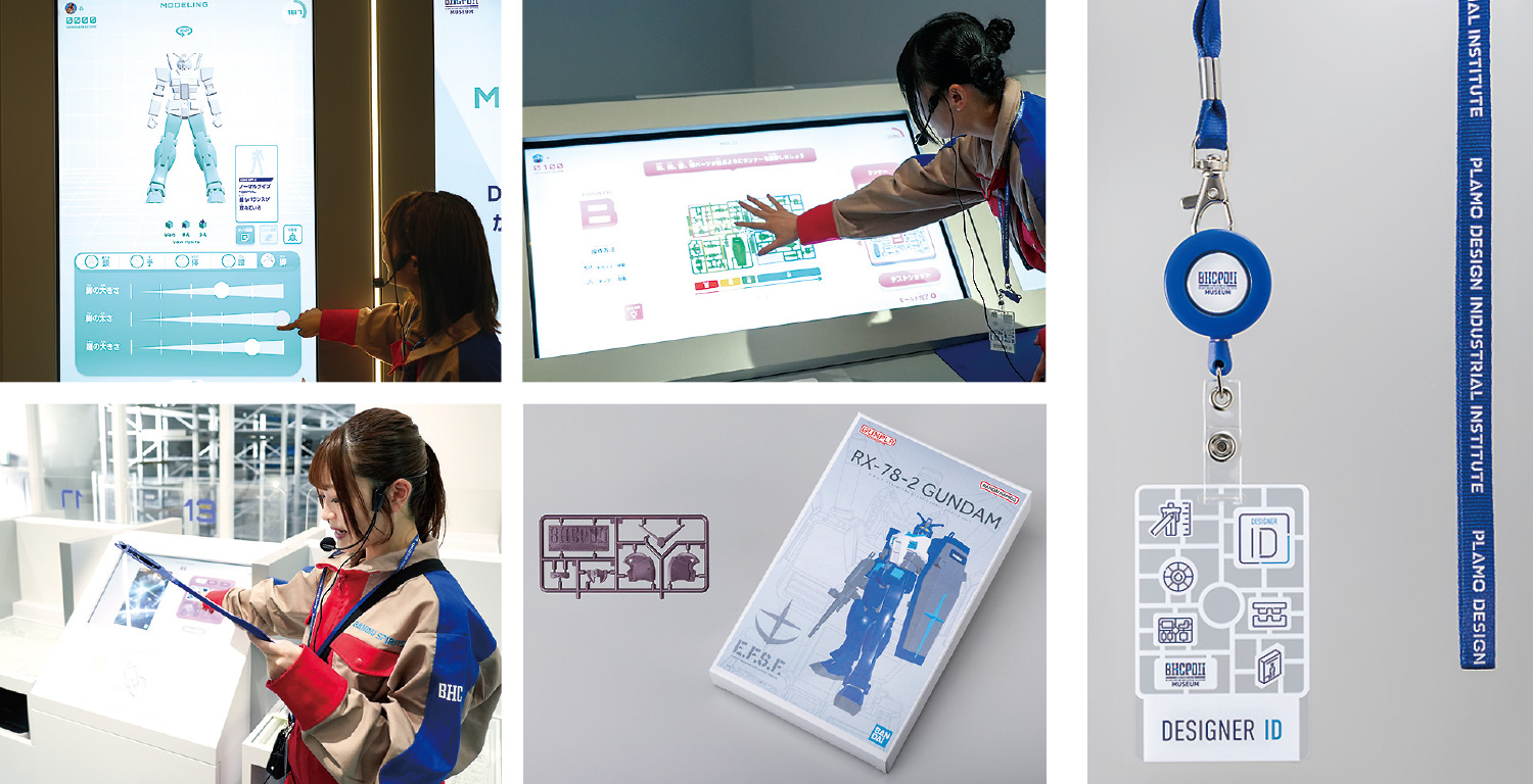 地域の方をはじめイベント会場で多くの方に組み立てていただいたガンプラ4,000体の展示が圧巻!来場者が“プラモデザイナー”になりきって、プラモデルが生まれるまでの一連の過程を体験!自分専用の「DESIGNER ID」を作成し、各体験をスタート。