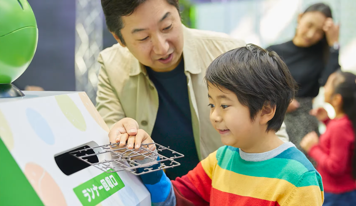 「ガンダムR作戦」は、ガンプラリサイクルプロジェクトを知っていただくために開催しているイベントです。会場では「エコプラ」の体験キットを配布し、エコプラの組み立てから回収ボックスでのランナー回収までを体験いただいています。この活動を通じて、リサイクルへの関心を広げていきたいと考えています。
