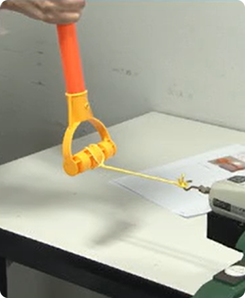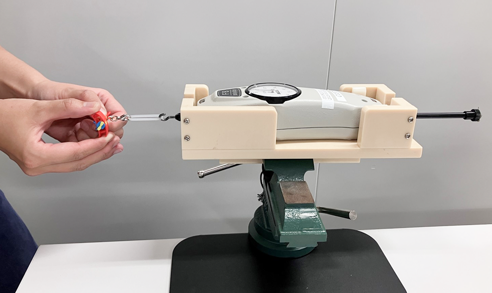 突起部や取り付けられている部品を曲げたり引っ張ったりして、危険な部分や小さな部品が発生しないかを確認する試験