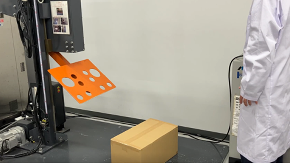 製品を梱包したカートンを積み下ろしする際の衝撃から製品を保護できているかを確認する試験