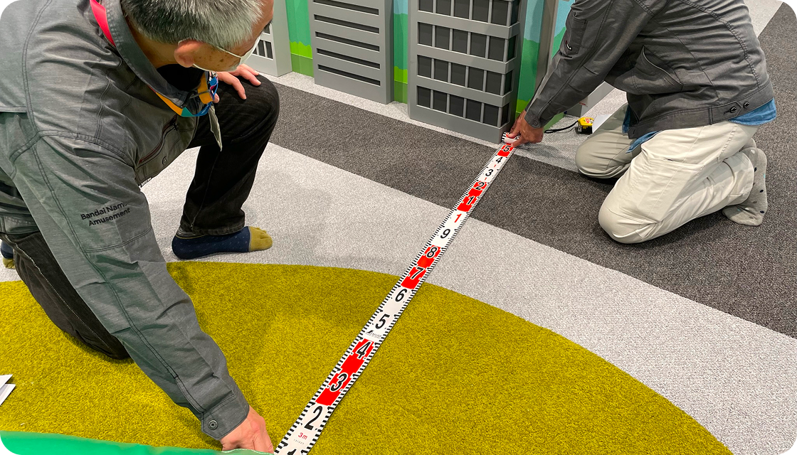 また、製作段階でも新たな危険・不安事項が生じていないかを確認し、施工・設置時には専門部署が厳重にチェック。専門部署が現地を訪問し、関連法規や当社独自の点検ガイドに基づいて点検を実施しています。建築基準法や、消防法、労働安全衛生法などの法令や各種規格を遵守し、日々徹底した安全確認を実施しています。さらに遊具が使われ始めてからも、定期点検を欠かしません。
