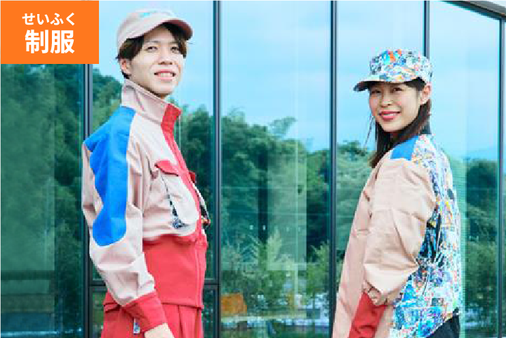 工場で働く人たちの制服は、東京芸術大学と一緒にデザインしたよ。従業員のみんなもアイデアを出しあって、みんなが「着たくなる制服」をつくったんだ。