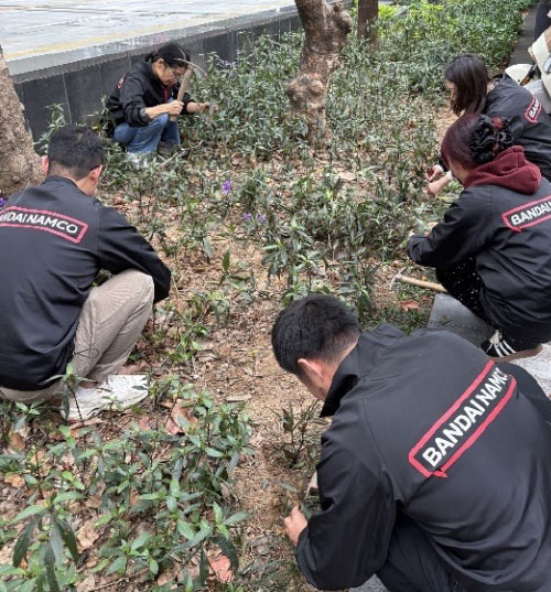 中国・深センのBandai Shenzhenでは、地域コミュニティが主催する「より良い地域社会づくり」活動に従業員が参加し、緑化活動を行いました。近隣の公園にルエリア・シンプレックス(蓝花草)苗約500本植樹し、地域の緑化に貢献しました。