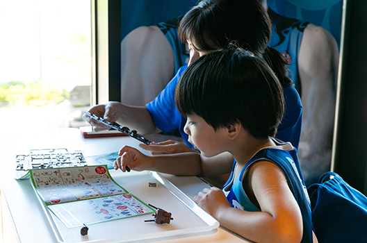 - 使用できなくなった「島根スサノオマジック」選手用ユニフォームを素材として、オリジナルのキーホルダーを作る体験会