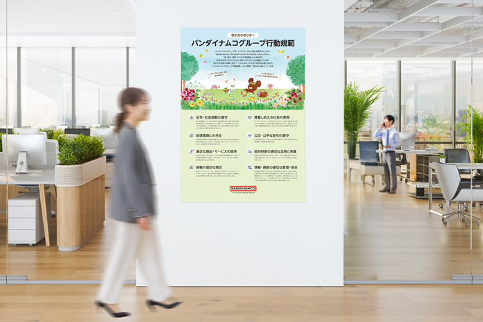 バンダイナムコグループに関わるすべての人が、お互いを尊重しあえるよう、人権尊重に向けた取り組みを推進するとともに、誰もがいきいきと働ける職場環境を実現し、社会と企業の持続的な発展を目指します。